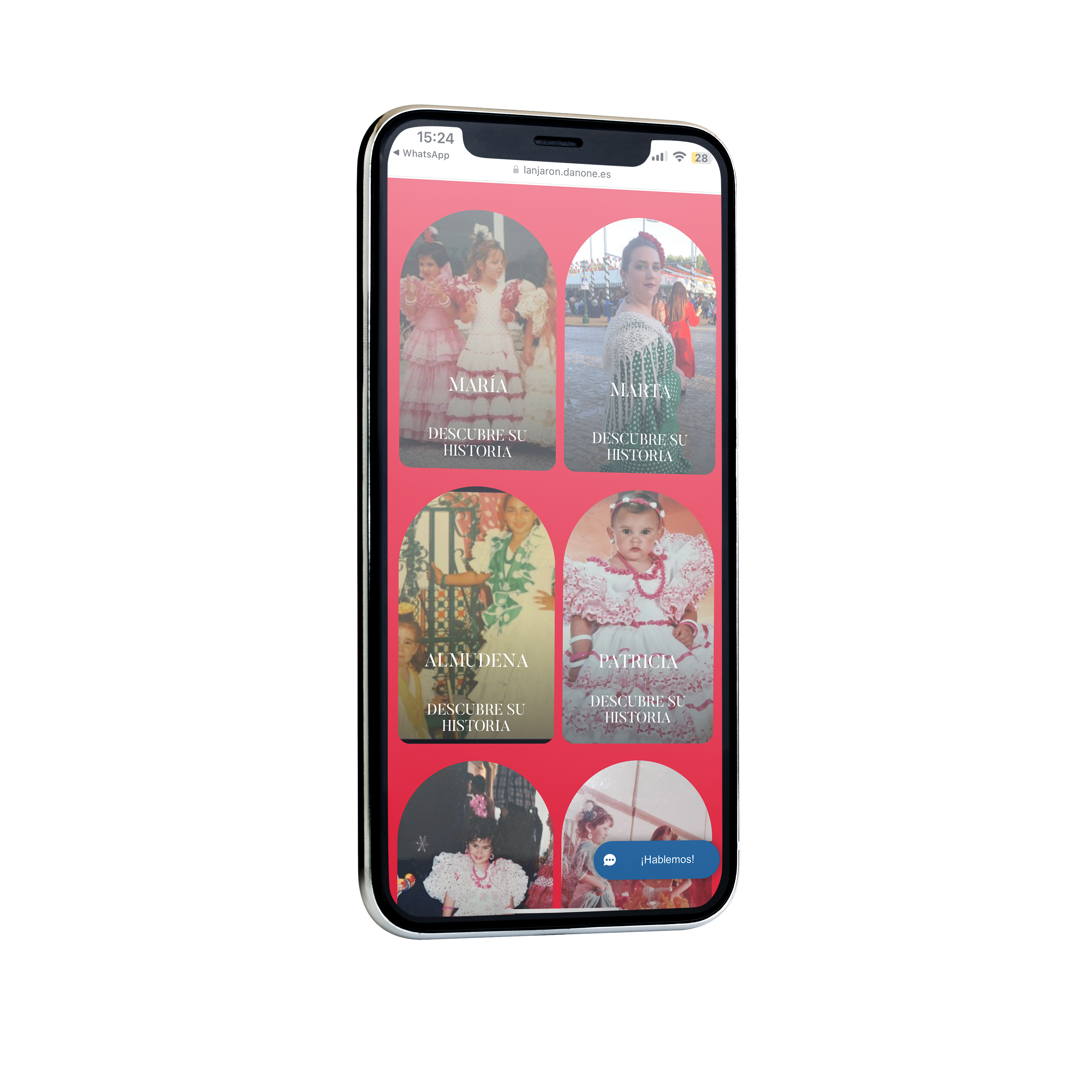 El vestido, lanzado por Lanjarón en colaboración con Begoña Penalver, incorpora nuestras etiquetas inteligentes colocadas en cada lunar y a lo largo de la cola. Esta tecnología permite que, con solo acercar tu móvil, descubras todas las historias que han dado vida al Vestido Origen.